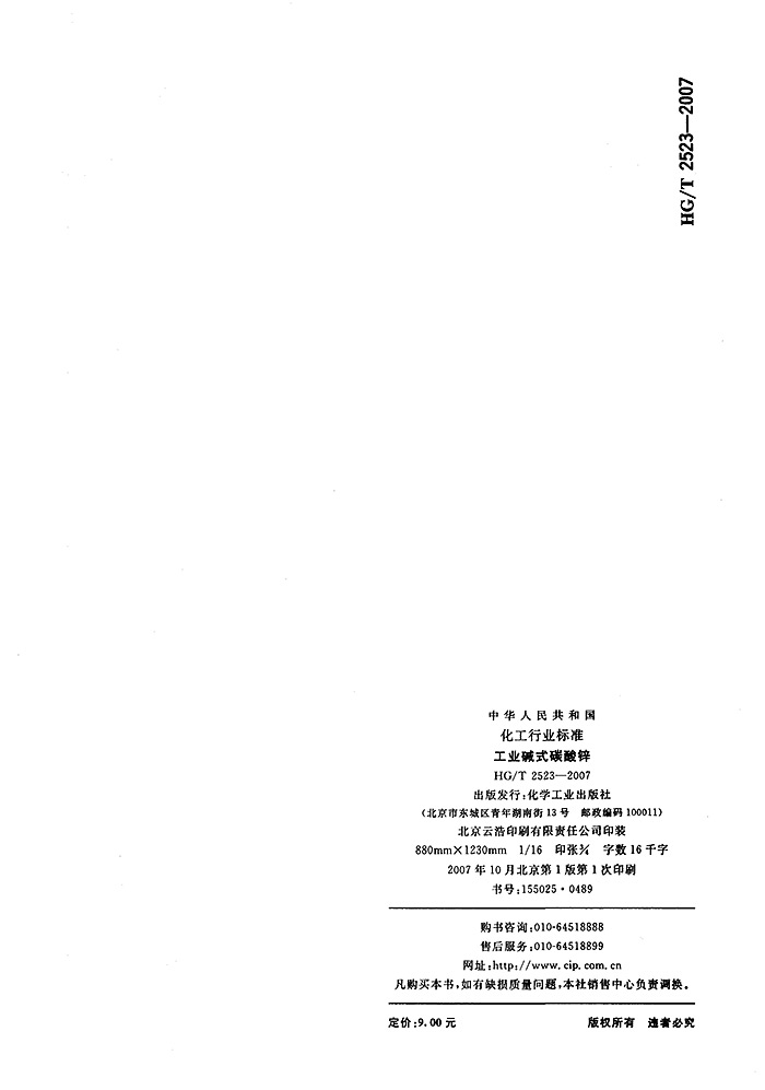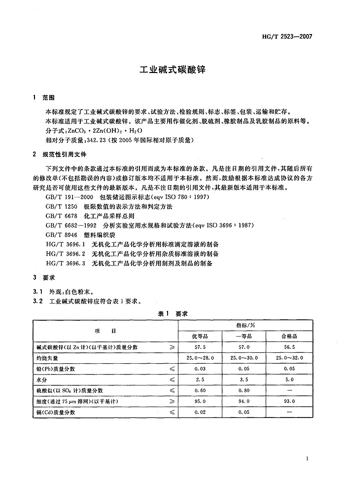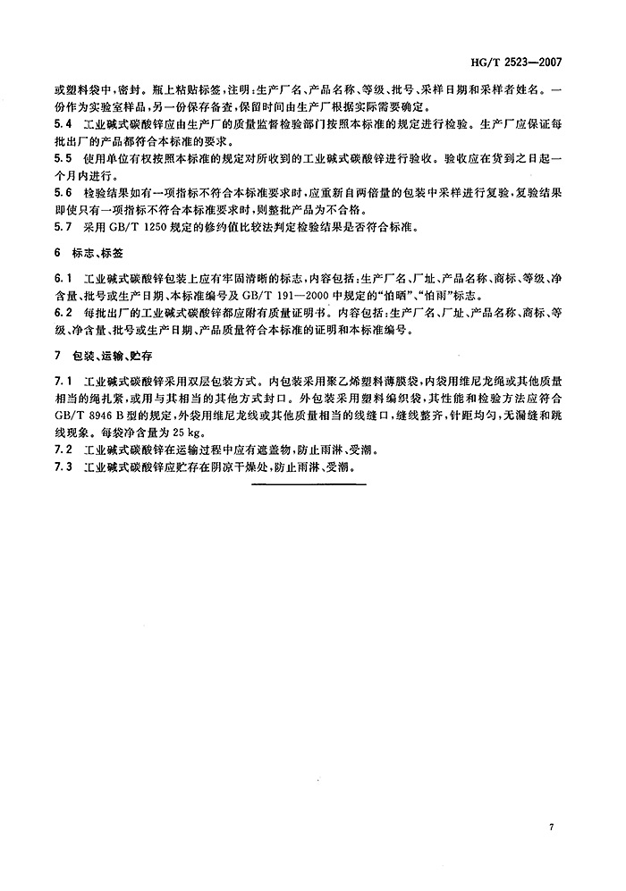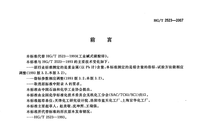 05 HG 2523-2007-T 工業(yè)堿式碳酸鋅